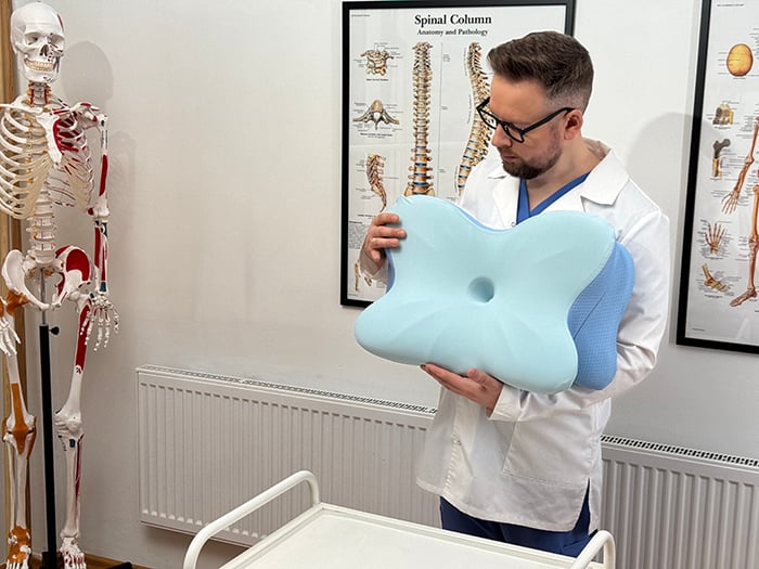 Das Kissen setzt sich durch seine klar definierte Konturierung ab, die Kopf und Halswirbelsäule stabiler führt als herkömmliche Memory-Foam-Kissen. Dadurch bleibt die Nackenhaltung im Schlaf ausgeglichener, was Verspannungen deutlich reduzieren kann.